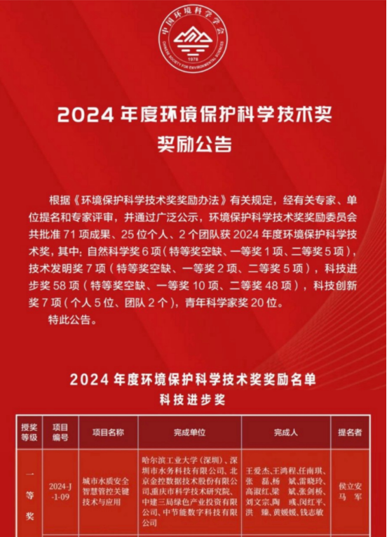 近期,中国环境科学学会公布了2024年度环境保护科学技术奖奖励名单,凯发k8官网低碳环保中心雷晓玲教授团队参研的“城市水质安全智慧管控关键技术与应用”项目取得科技进步奖一等奖。