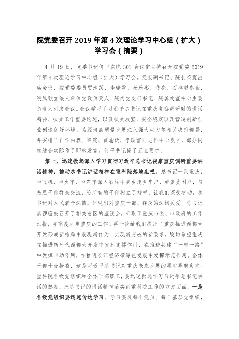 重科凯发k8官网2019年第4次理论学习中心组(扩大)学习会新闻(摘要)
