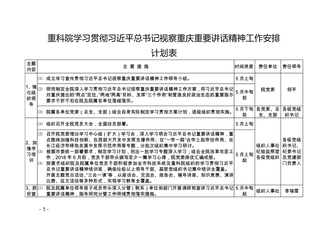 重科院学习贯彻习近平总书记视察重庆重要讲话精神工作安排