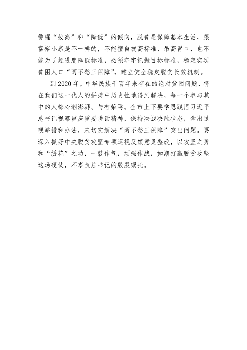 着力解决“两不愁三保障”突出问题——一论学习贯彻习近平总书记视察重庆重要讲话精神