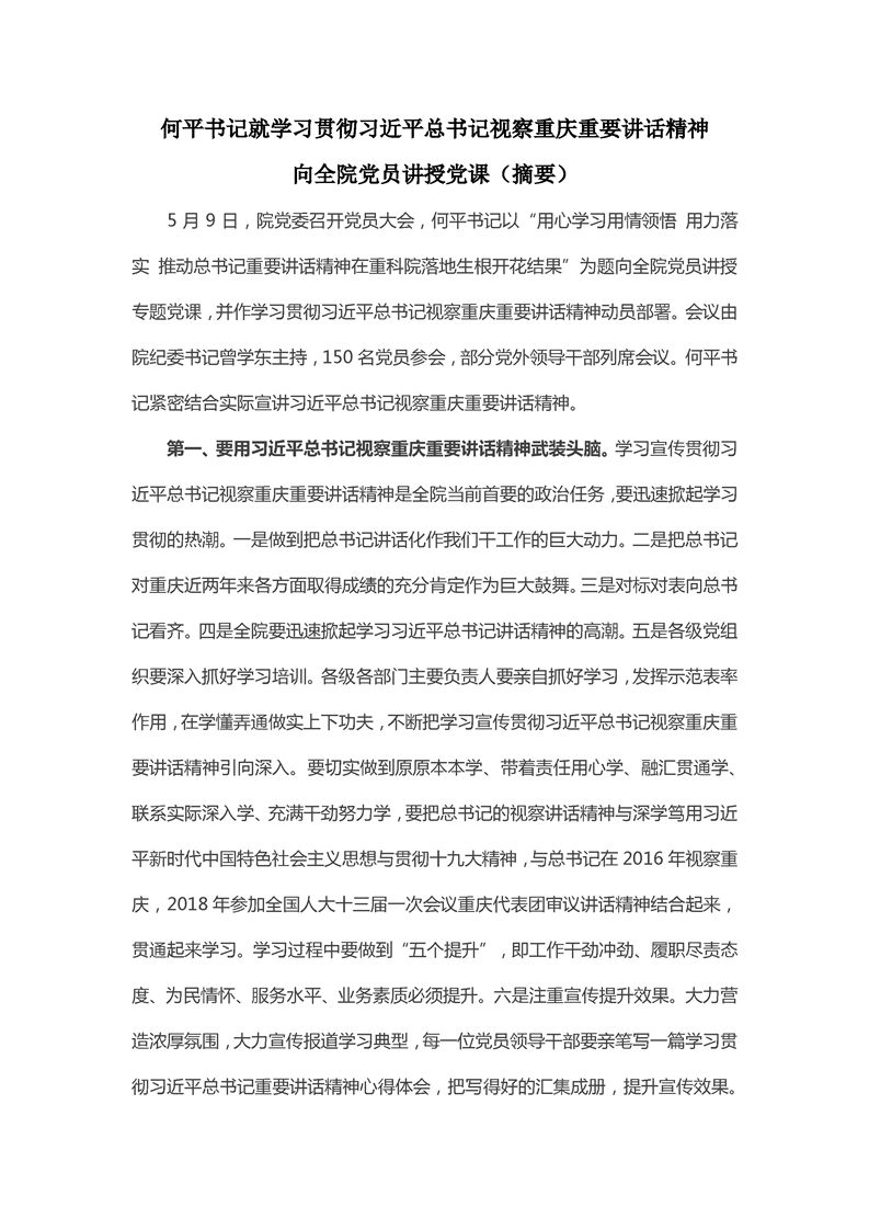 关于召开院党员大会(党课、动员部署会)新闻(摘要)