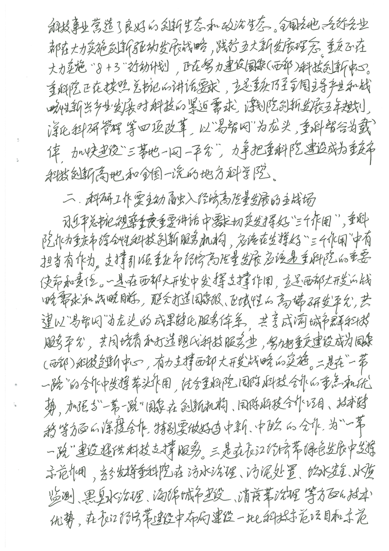 贯彻落实习近平总书记视察重庆重要讲话精神 有助于重科院科研工作再上新台阶 - 于明政