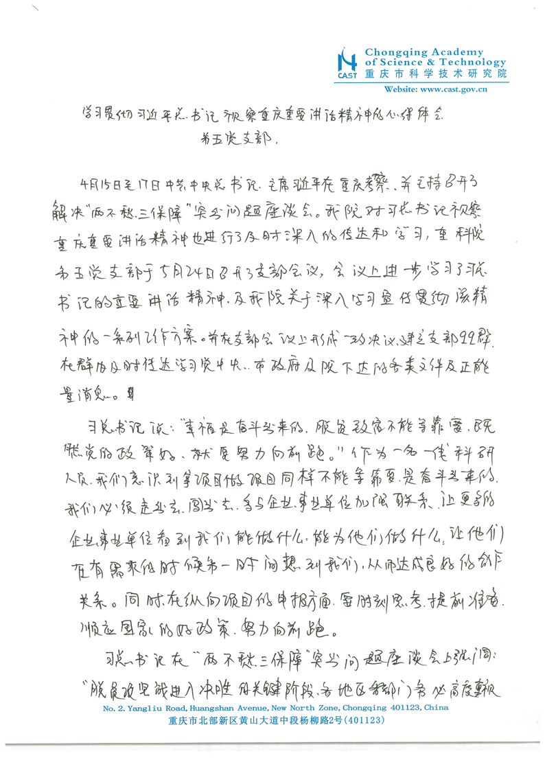 学习贯彻习近平总书记视察重庆重要讲话精神的心得体会 - 程仁菊