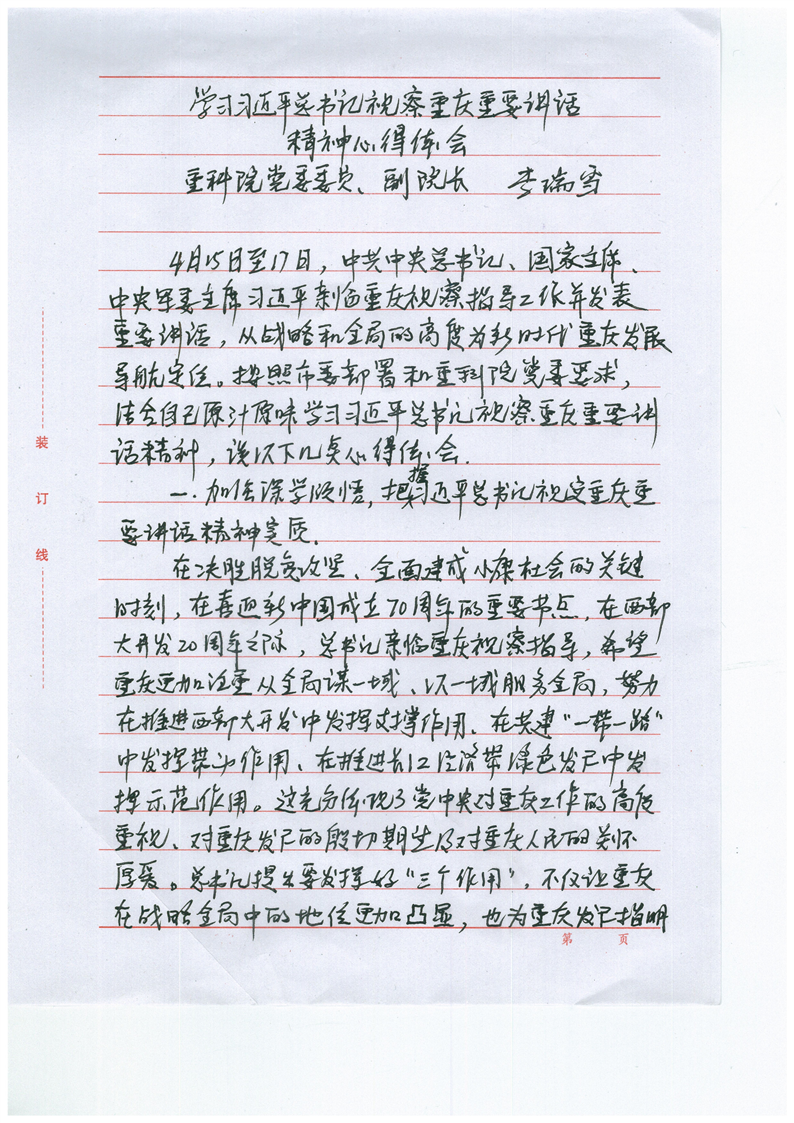 学习习近平总书记视察重庆重要讲话精神心得体会-李瑞雪