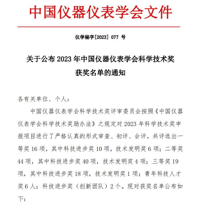 近期,中国仪器仪表学会公布“2023年中国仪器仪表学会科学技术奖获奖名单”,凯发k8官网自动化所公司以第二完成单位参与“高性能温度传感器关键技术开发与产业化”项目荣获科技进步二等奖。